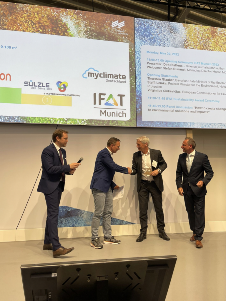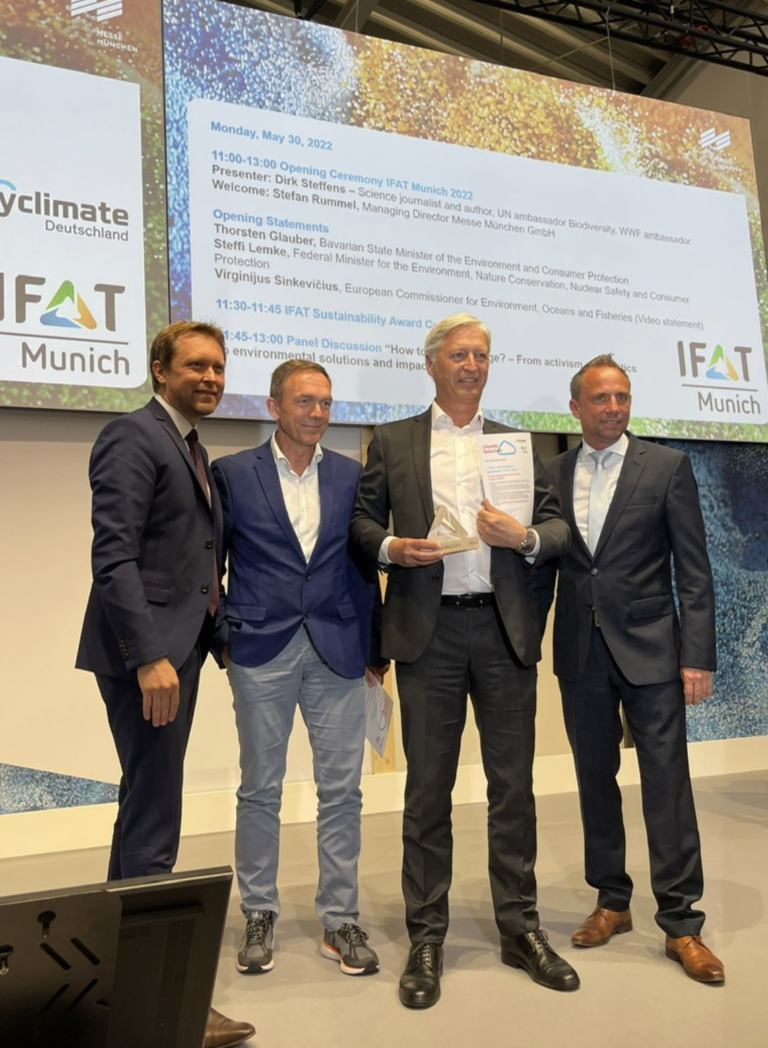 The IFAT conference highly encourages all participating companies to showcase their contribution to sustainability not just in their business, but also in their presence at the trade fair. The IFAT Go Green Sustainability Award is given to companies that walk the talk in being truly sustainable, even through their exhibition booths. ViaCon participated in the GoGreen CO2 Audit initiative, contributing to making IFAT a climate-neutral event by supporting a MyClimate project to bring clean drinking water to schools and households in Uganda. ”We are immensely proud of having won the prestigious IFAT Go Green Sustainability Award, giving recognition to our efforts to contribute to constructing a sustainable future” says Hans Gschirr, Vice President StormWater Solutions, ViaCon Group. Continuing with the strong environmental focus in everything we do within ViaCon, our presence at the IFAT conference in Munich (May 30-June 3, 2022) is yet another opportunity to drive forward our sustainability goals. It is also an opportunity for us to demonstrate our environmental promises at the event, putting our sustainable trade fair appearance on display. ViaCon aims to connect at IFAT to discuss how we can construct a more responsible, sustainable, climate-conscious future. Together. “I am very pleased that despite tough competition, we have won this coveted IFAT Go Green Sustainability Award. Well done, team!” says Stefan Nordström, CEO ViaCon Group.